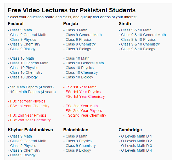 I often use the website because every topic is explained as an effective way with the help of diagrams and charts. The teachers are well-qualified. The mission of the website is to eliminate the Mafia of Academy in Pakistan as they're doing an amazing job. You can also use Youtube or Dailymotion, Google Images, Google Videos. All lectures are explained in Urdu only.