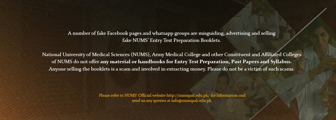 Attention: NUMS has denied it has syllabus for the current year. I have been following NUMS since 2016, it was the time when they uploaded the syllabus themselves. I have a proof, you can check in Way Back Machine that stores the saved copy of all the internet websites for the future evidence. Link: Proof. It is up to you either you prepare from the syllabus mentioned below or not.