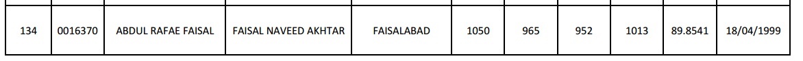 If you don't know about Abdul Rafae Faisal who did F.Sc from Fazaia Inter College, Lahore and has got admission in Punjab Medical College, Faisalabad. He got 952 marks in F.Sc (Federal Board), and 1013 marks in MCAT. It was first his attempt, and aggregate is %89.8541.