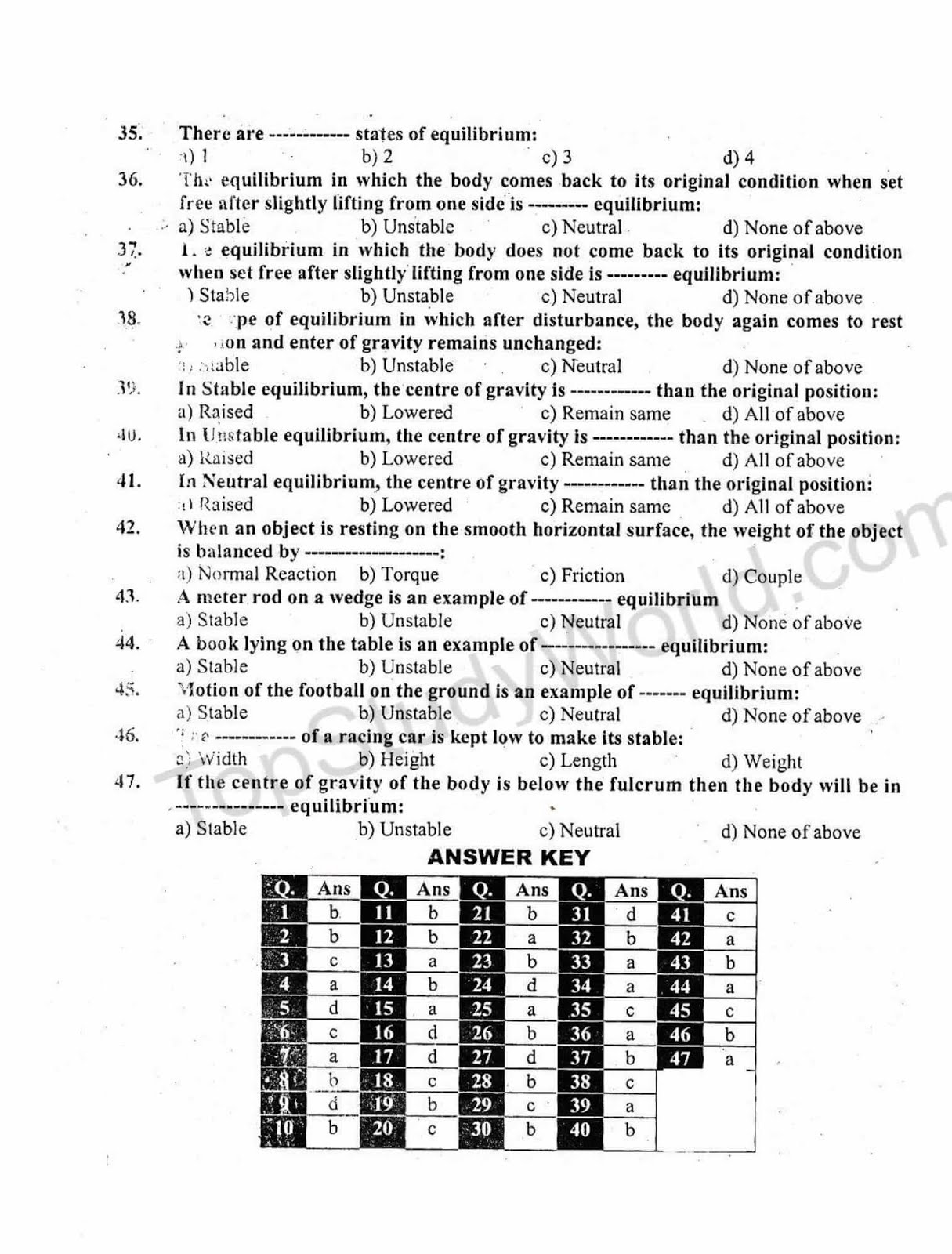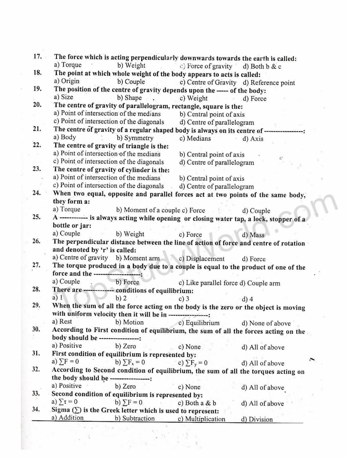 KIPS MCQs OF TURNING EFFECT OF FORCE FOR 9TH CLASS PHYSICS
