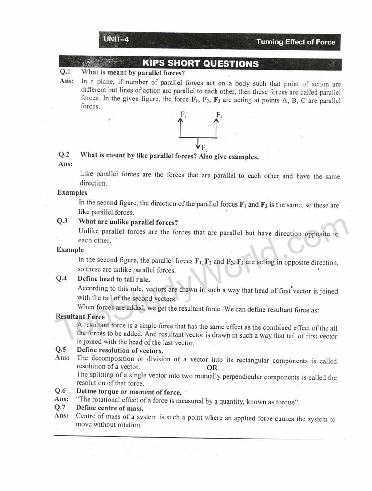 KIPS SHORT QUESTIONS OF TURNING EFFECT OF FORCE