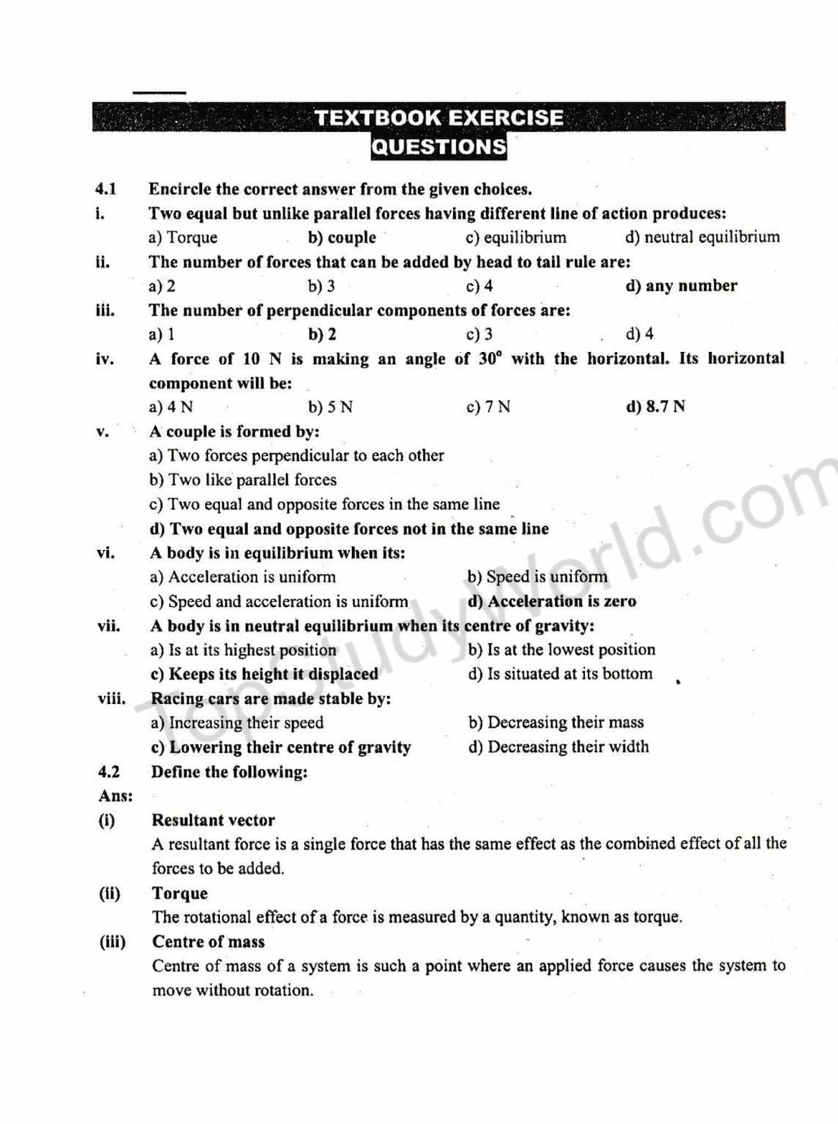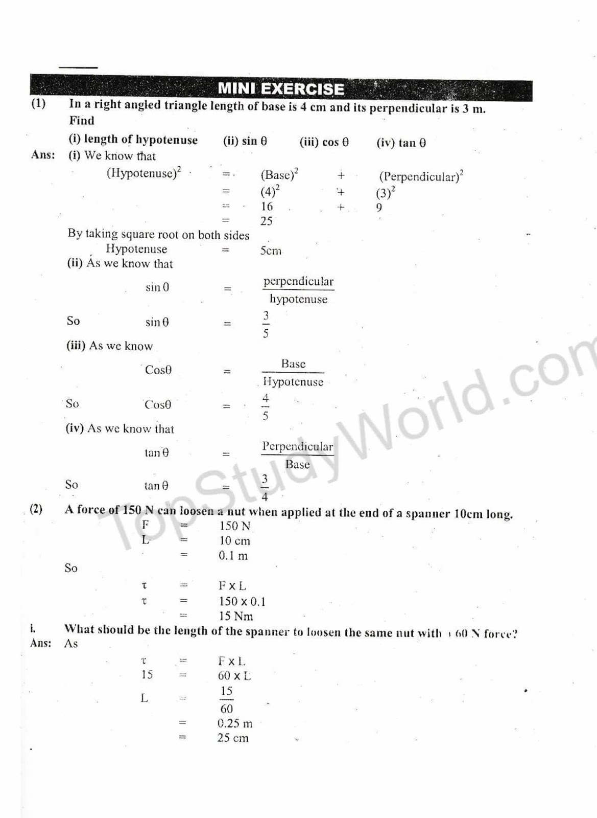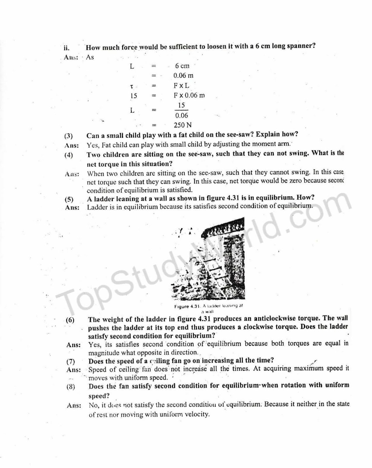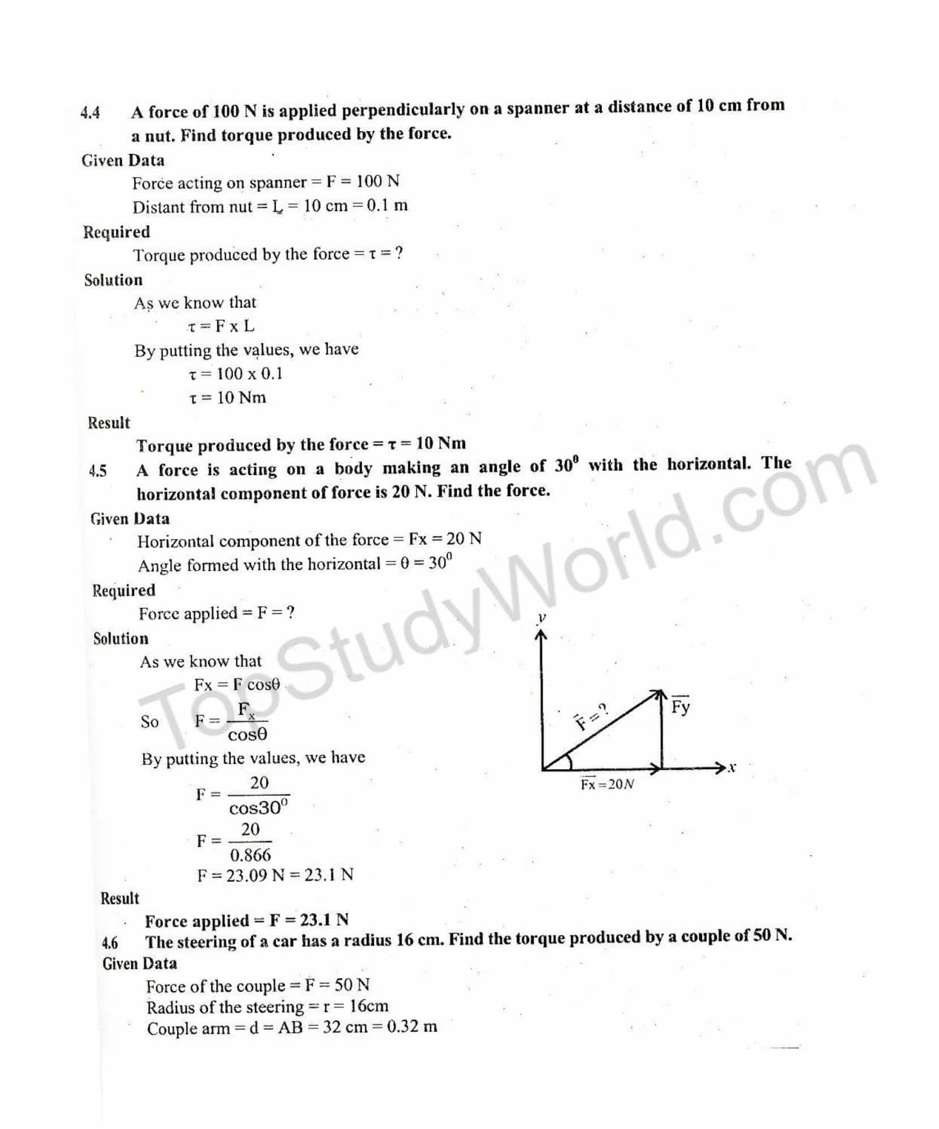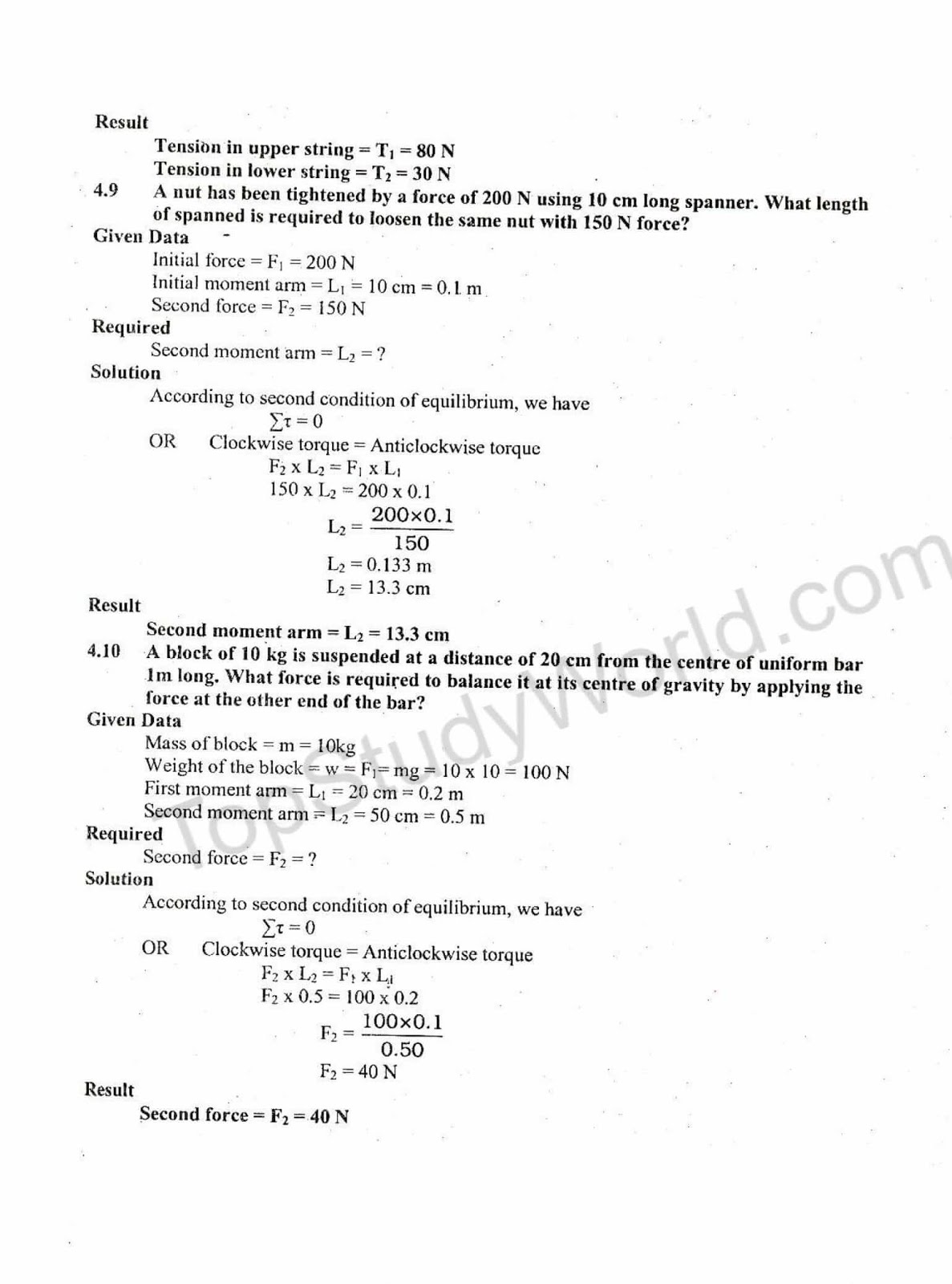 KIPS TEXTBOOK EXCERCISE OF TURNING EFFECT OF FORCE FOR 9TH CLASS PHYSICS