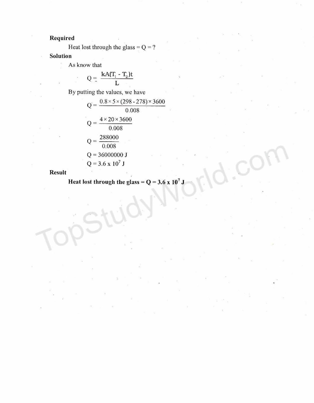2. How much heat is lost in an hour through a glass window measuring 2.0 m by 2.5 m when inside temperature is 25° C and that of outside ls 5° C, the thickness of the glass is 0.8 cm and the value of k for glass is 0.8 Wm 1 k 1?