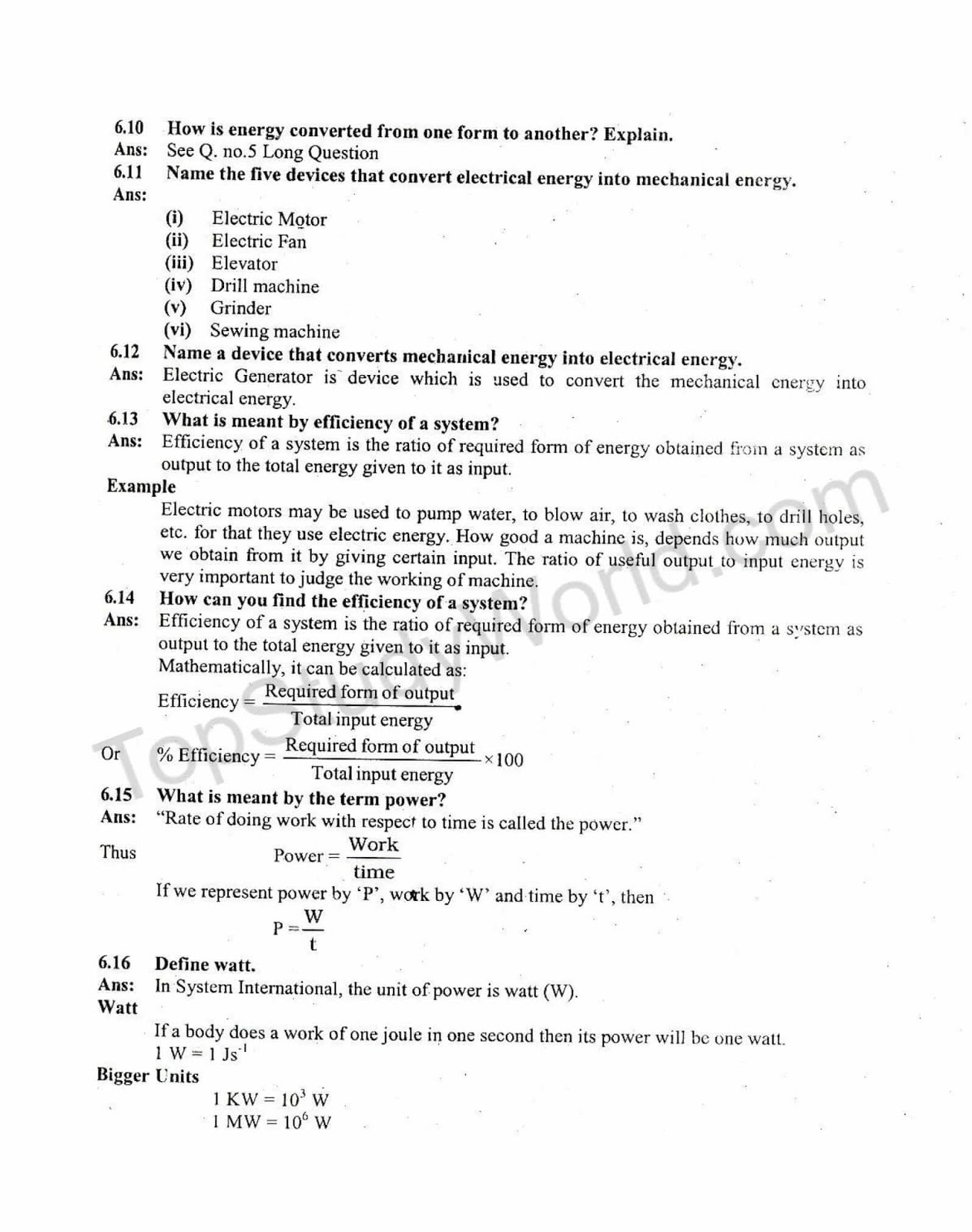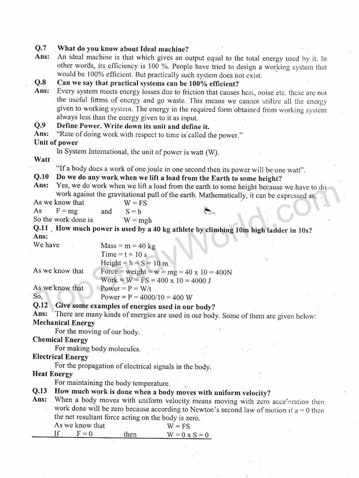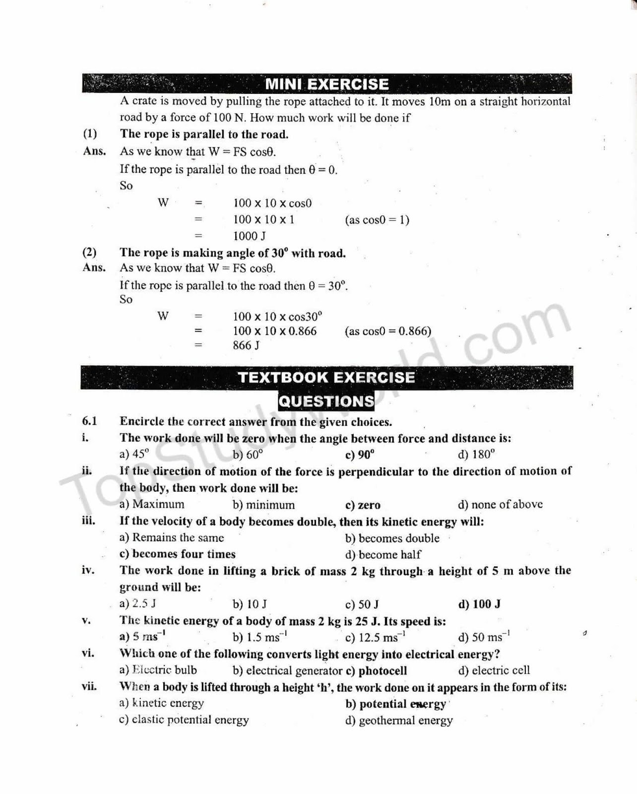 KIPS TEXTBOOK EXCERCISE OF CH# 5 FOR 9TH CLASS PHYSICS