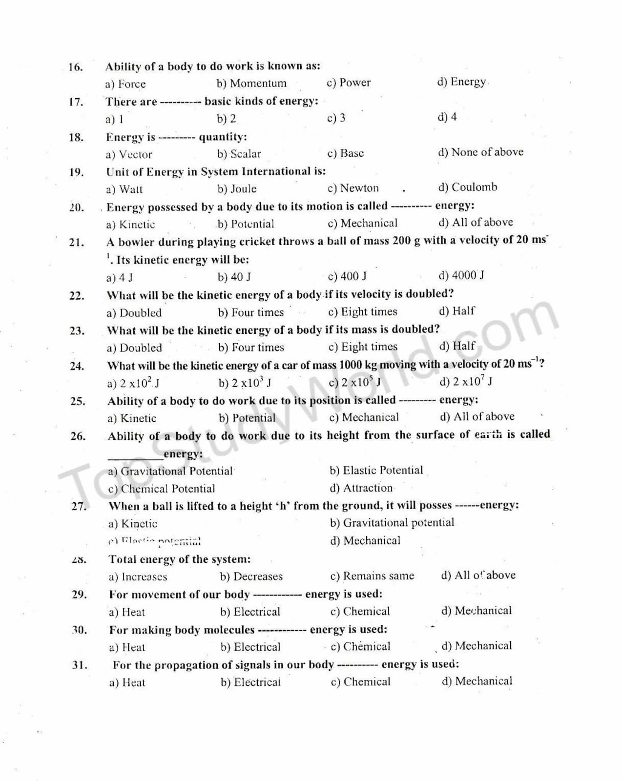 KIPS MCQs OF CH# 5 FOR 9TH CLASS PHYSICS