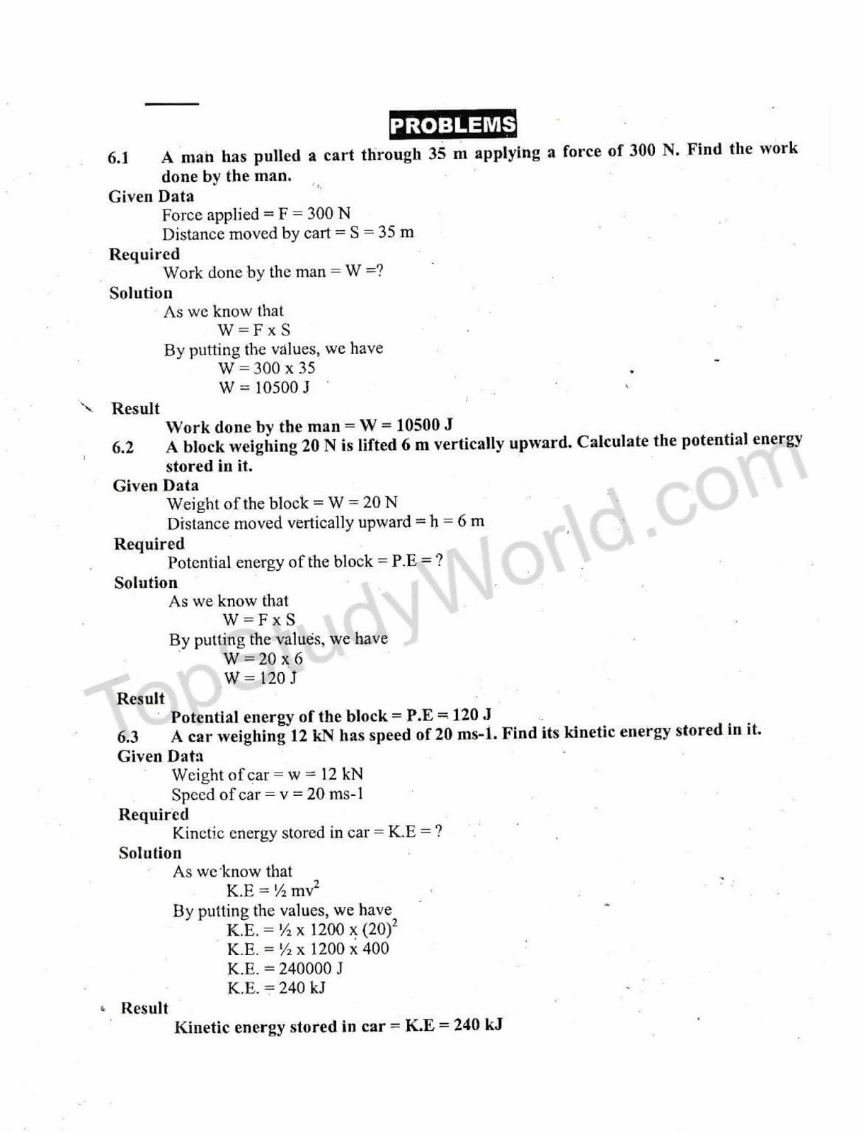 KIPS SOLVED NUMERICALS OF CH# 5 FOR 9TH CLASS PHYSICS