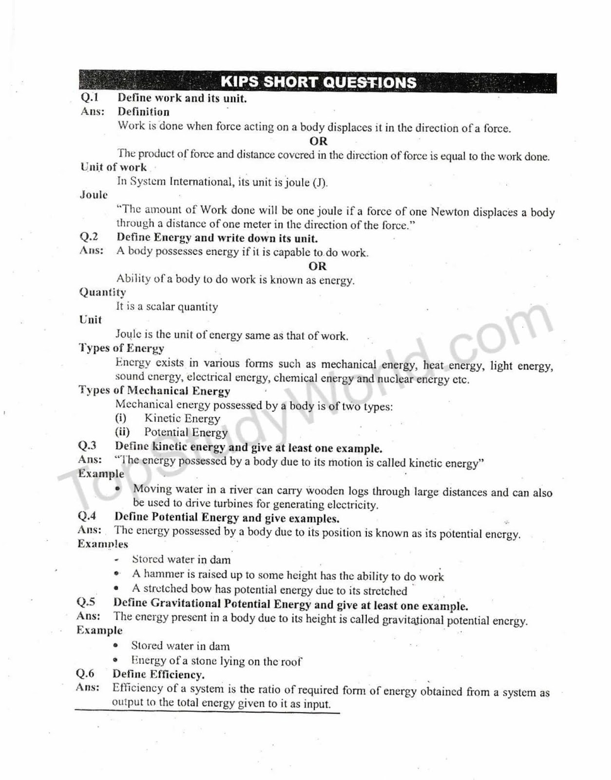All the chapters of 9th Class Physics have been uploaded here on Top Study World if you want to download the KIPS notes with ease in one place.