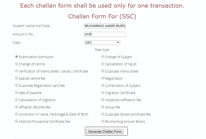 Go here, and write your name and Amount in Rs. 4100 and Class SSC, and Fee Type Examination Admission