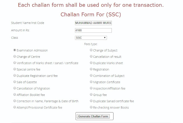 Go here, and write your name and Amount in Rs. 4100 and Class SSC, and Fee Type Examination Admission