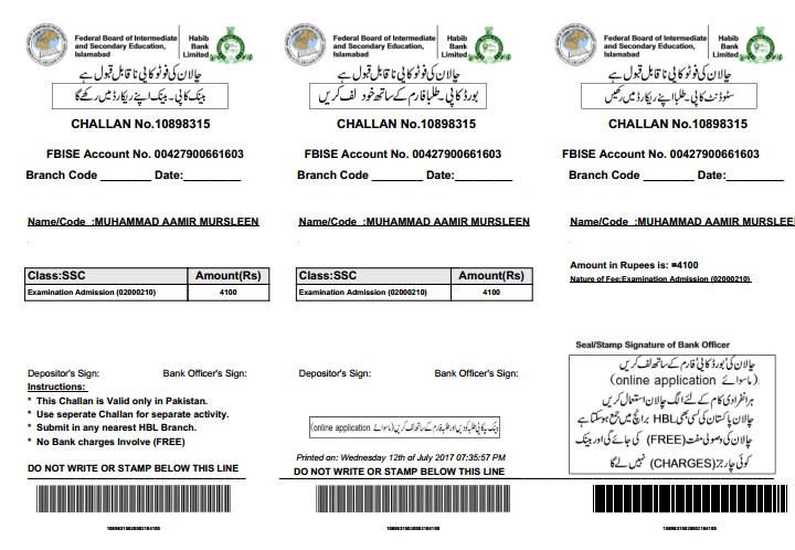 Then you have to go any nearest HBL Bank in your area and submit the fee. If you live abroad, and you want to submit money, you can read the last hint.