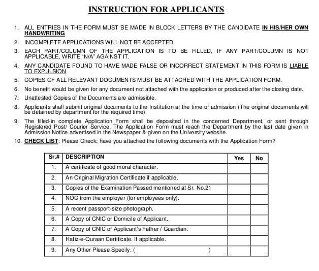 Step 1 - Download the Admission Form or Visit the University of Punjab: