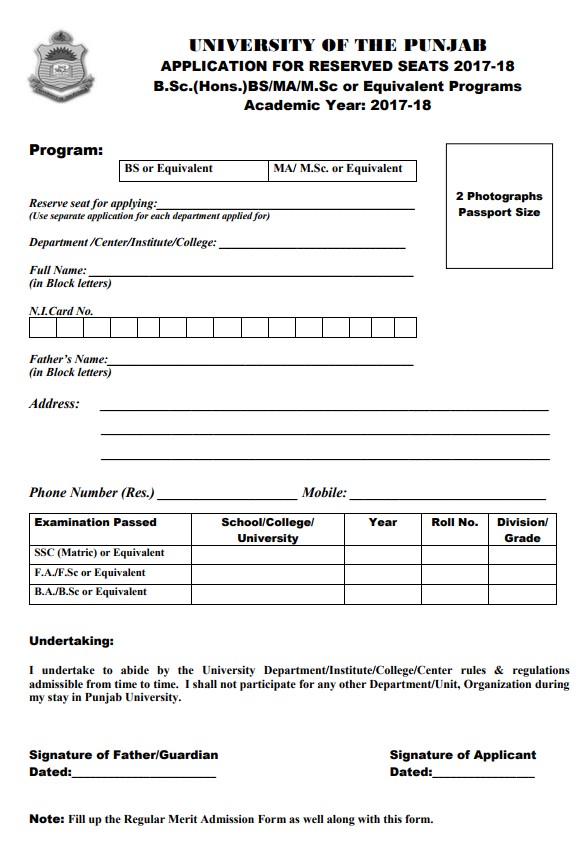 Step 1 - Download the Admission Form or Visit the University of Punjab: