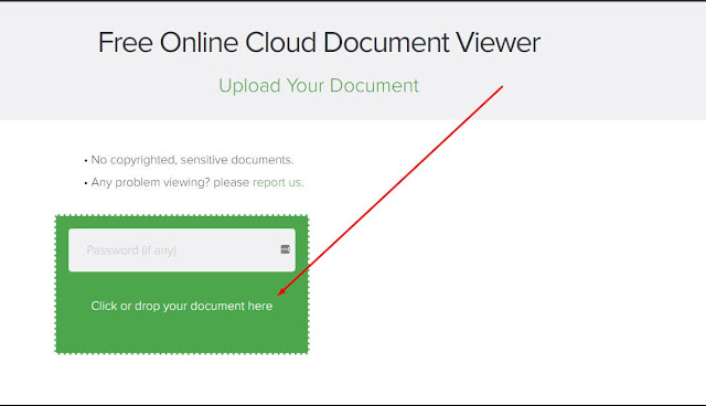 Go to Cloud Document Viewer, it will look like the below image. Click on "Click or Drop Your Document Here". Now locate the file that you want to run and select.