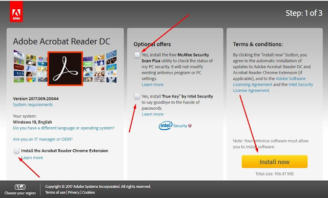 Go to Adobe Reader, and click Download. Make sure to uncheck the boxes because you don't need.