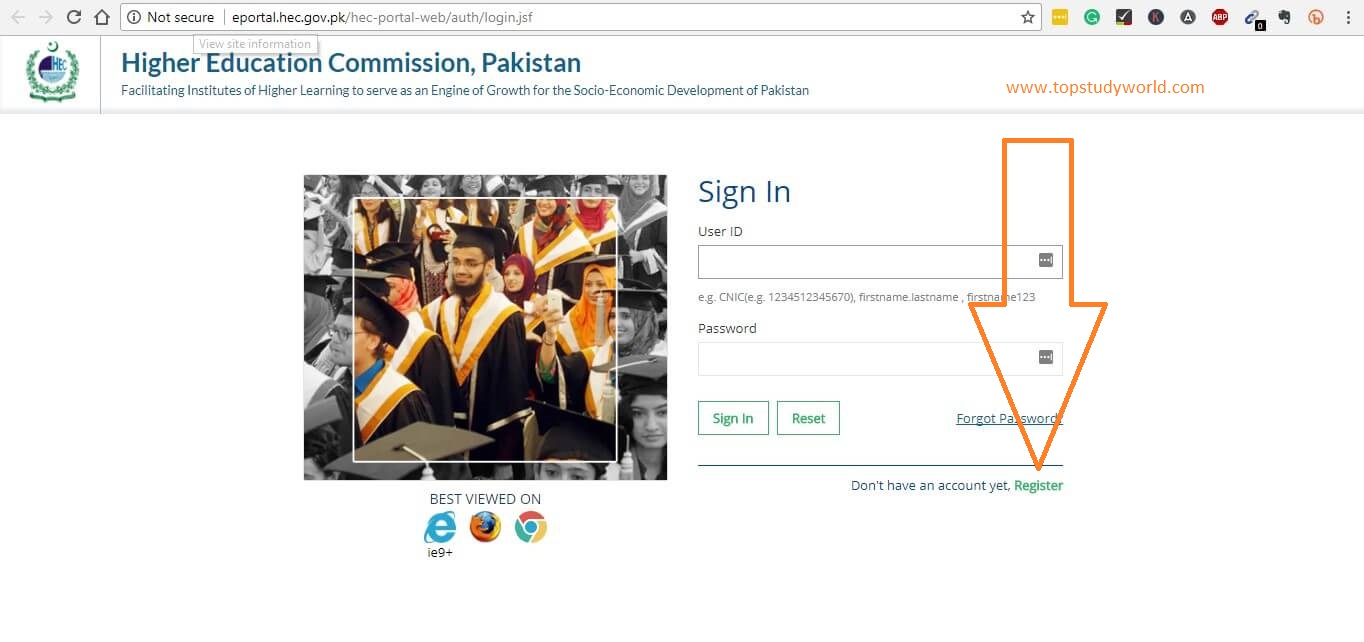 Go to E-Portal HEC, you will see the below interface. Just click on Register because you're are not a member, you need to have an account on it.
