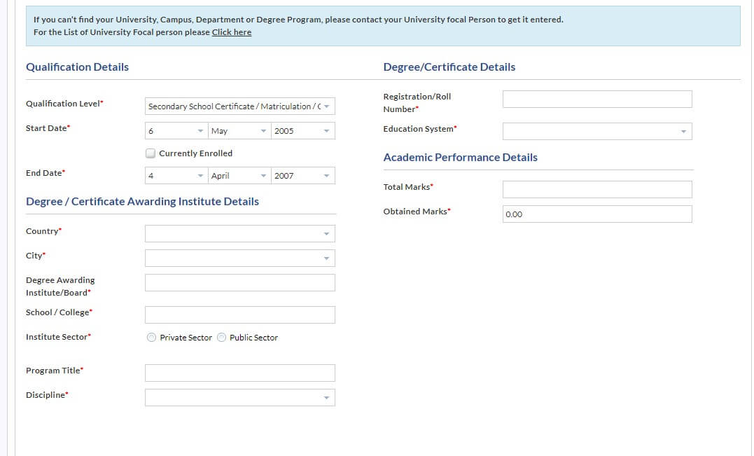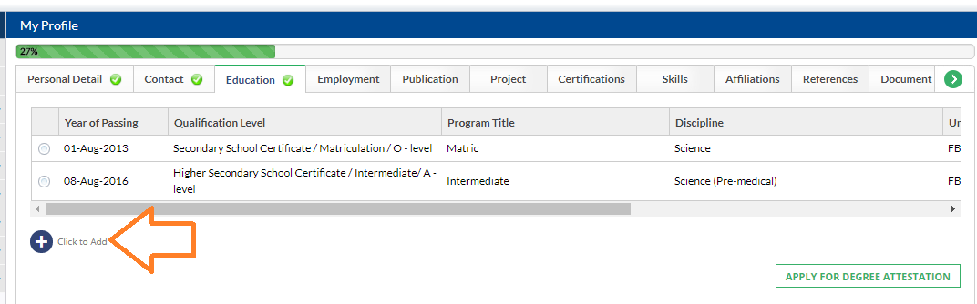 Note: I have written my SSC and HSSC info that is why it is showing the detail below. You have to complete, after that, you will see the same.