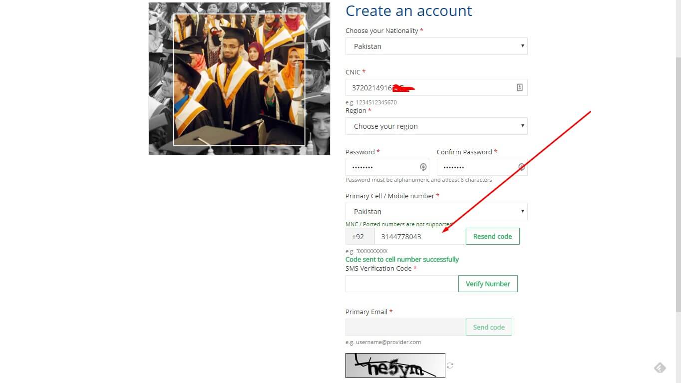 Don't have a CNIC? Don't worry, you can use your B-Form where CNIC number is written.The same goes for the email address that you need to provide the correct one, and then the code will be sent to your email