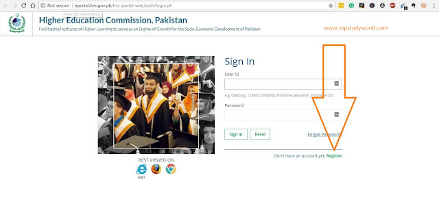 Go to E-Portal HEC, you will see the below interface. Just click on Register because you're are not a member, you need to have an account on it.