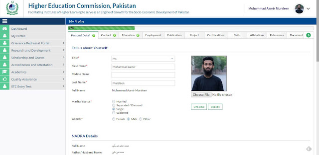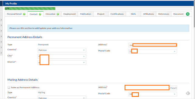 Now go to My Profile, and complete the information of Personal Detail, Contact, and Education. You don't need to complete the information for other things like Publications etc.