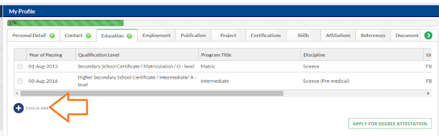 Now you have to fill the form for HSSC, so again click on Click to Add