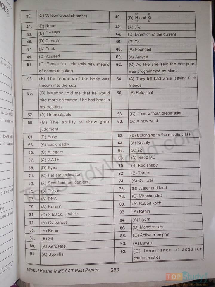 - First and foremost, these papers will help you get familiarized with the scoring pattern and layout of a test a bit different from MDCAT.