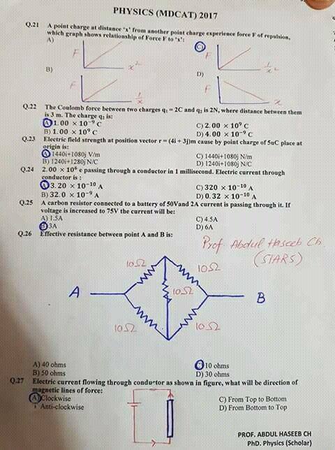 The squence is not according to the test, but the MCQs were the same as per MDCAT Entry Test. The name of the Professor is Abdul Haseeb Ch, a Ph.D Physics Scholar as it is written above.