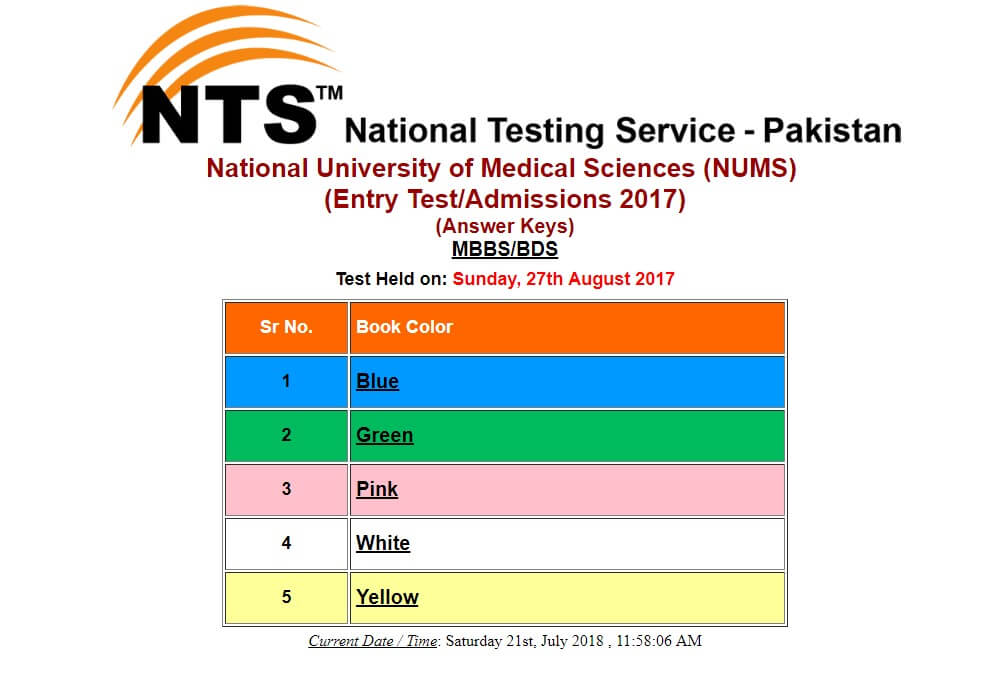 We will update the page as soon as the NUMS Answer Key 2018 is released. Keep refreshing this  page after every hour.