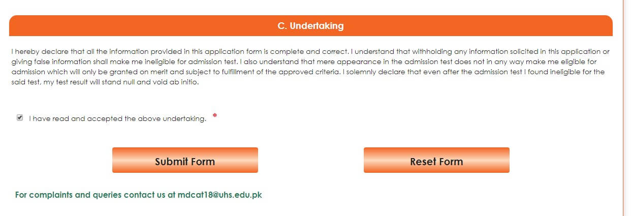 Once you have done it, click submit after checking "I have read and accepted the above undertaking."