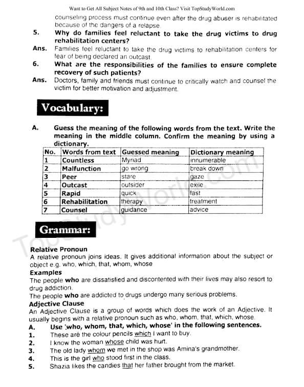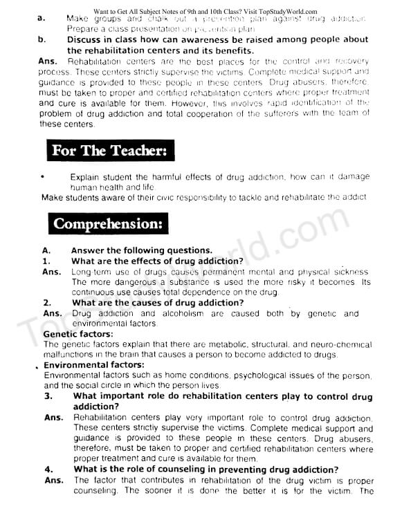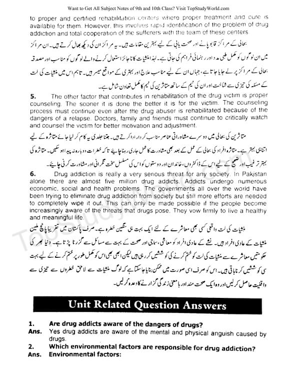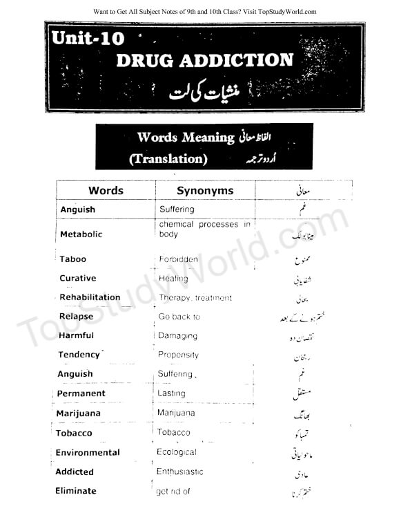 Top Study World: Unit 10 - Drug Addiction Notes in PDF [9th Class]