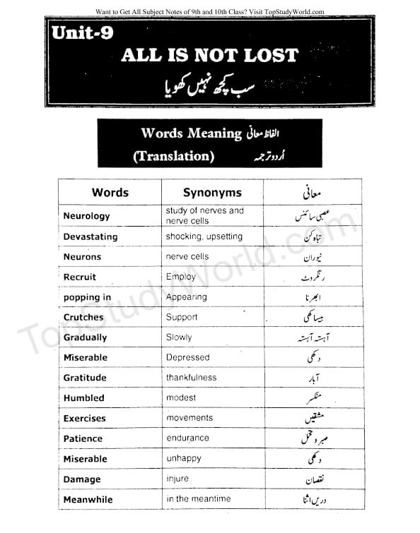 Are you looking for Unit 9 - All Is Not Lost Notes in PDF and JPG?