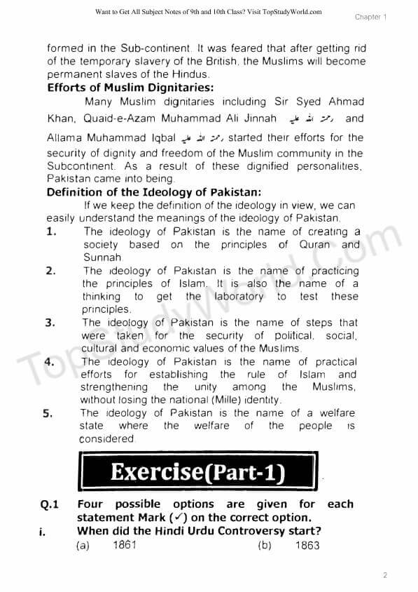 Are you looking for the notes of Chapter 1 - Ideological Basis of Pakistan for 9th class?