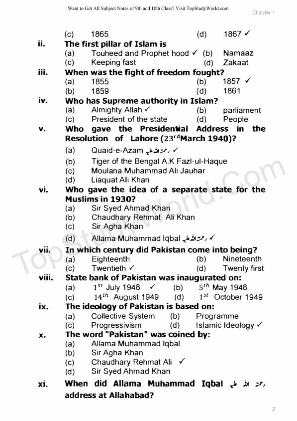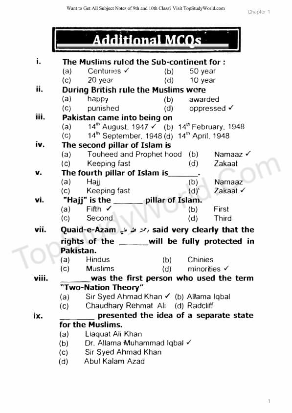 Related: 9th Class Pak Studies Notes (For All Chapters in Urdu and English)