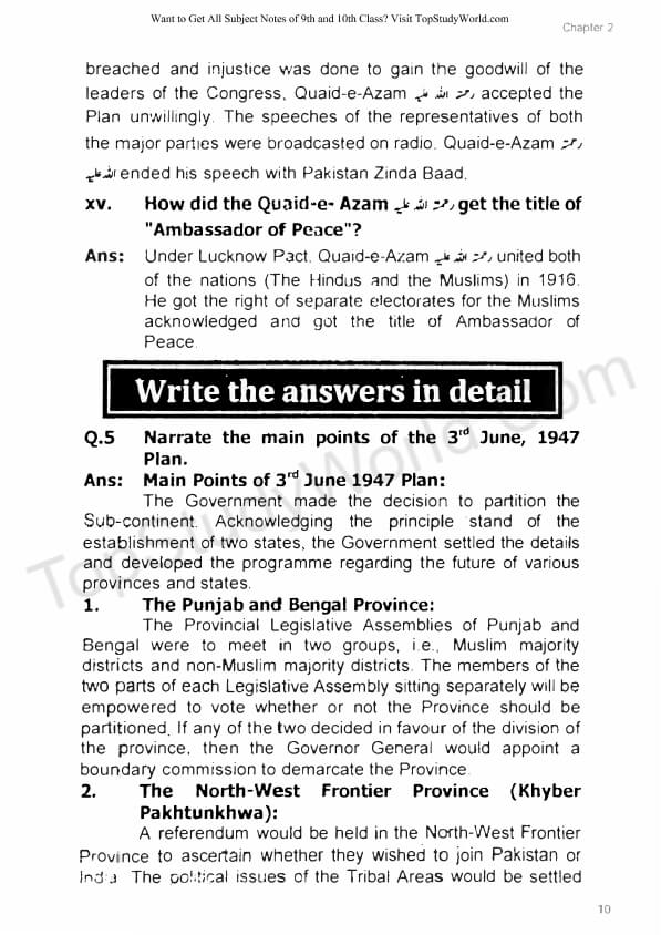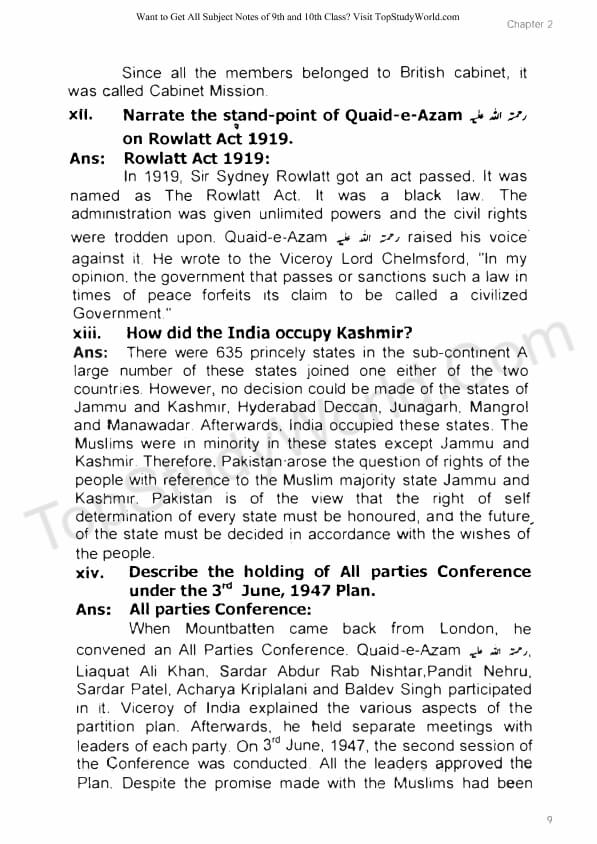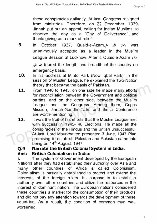 Related: 9th Class Pak Studies Notes (For All Chapters in Urdu and English)