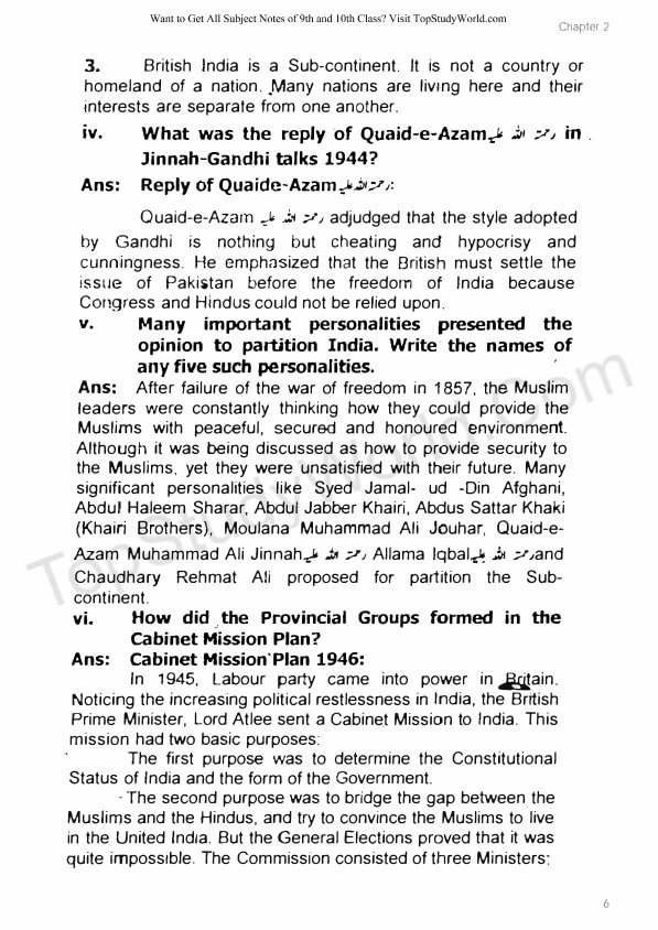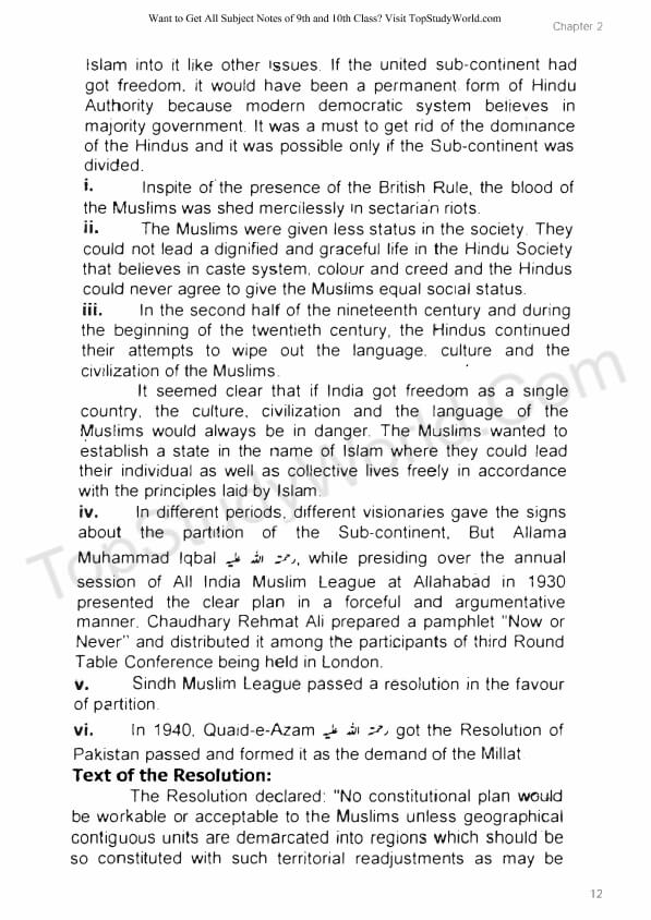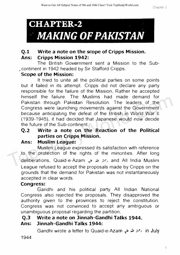 Are you looking for the notes of Chapter 2 - Making of Pakistan for 9th class?