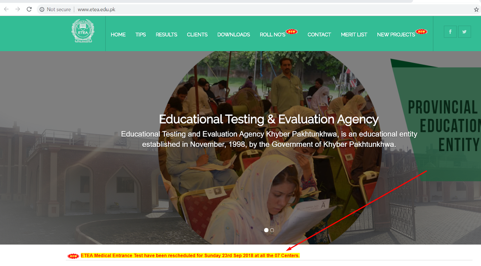 MDCAT and ETEA are going to be taken on the same day, 23rd September 2018.