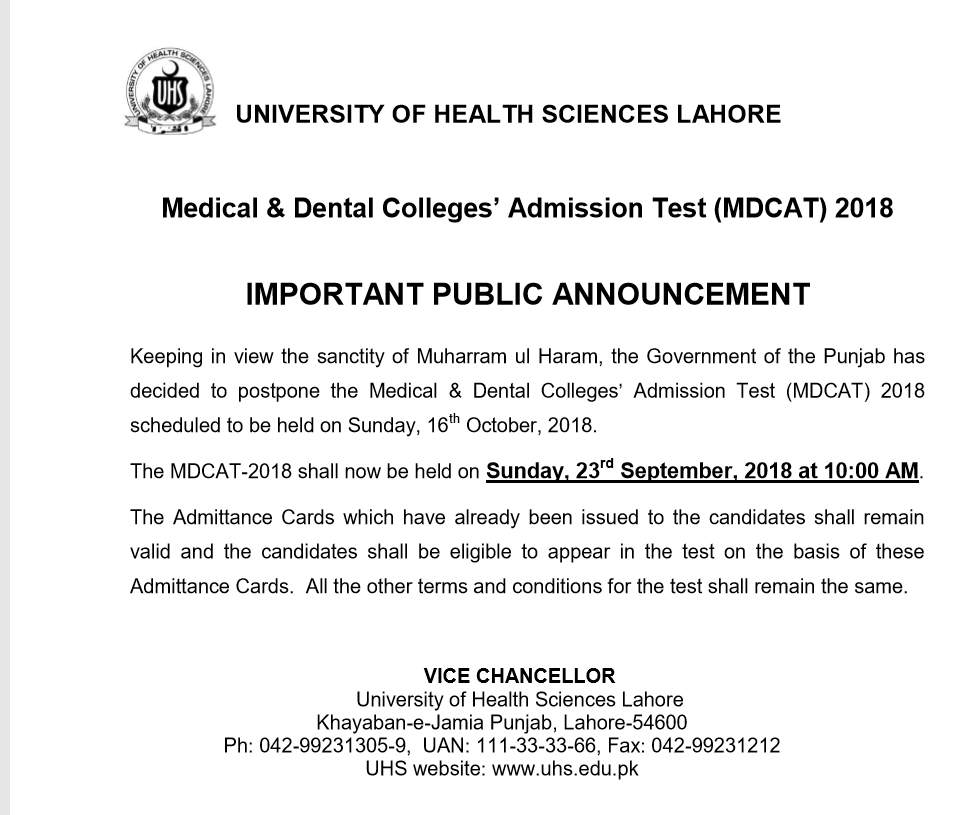Either UHS can change the date or the Educational Testing and Evaluation Agency of KPK can do something.