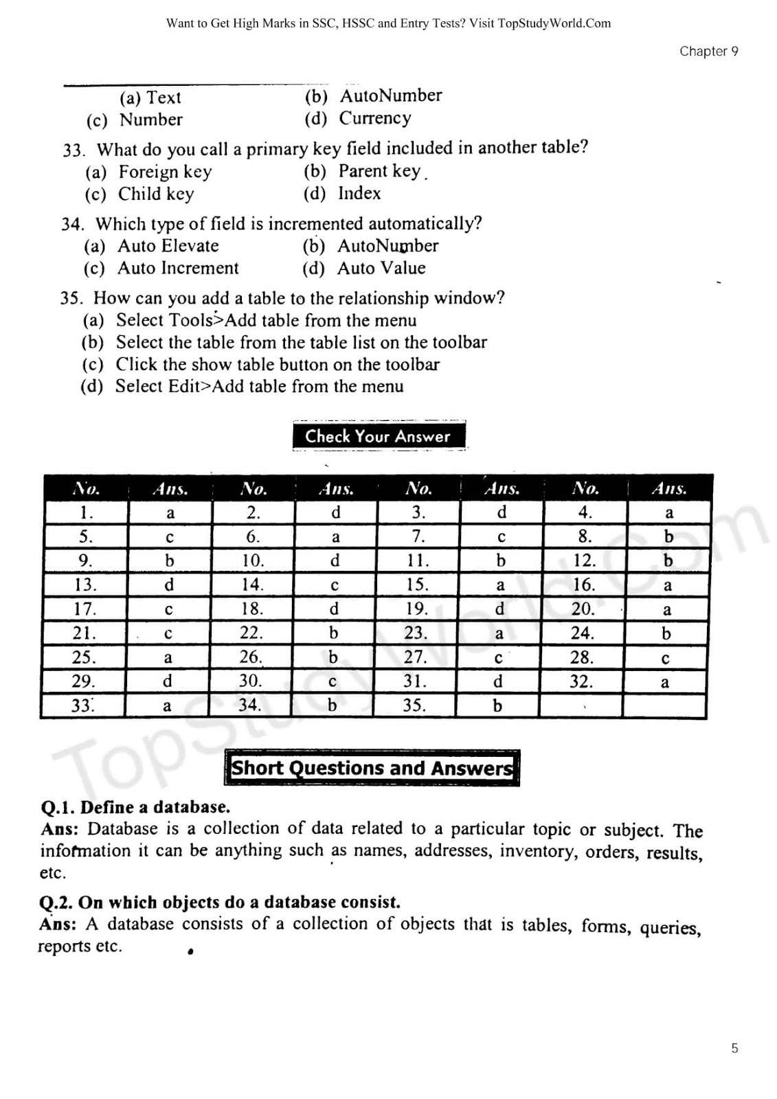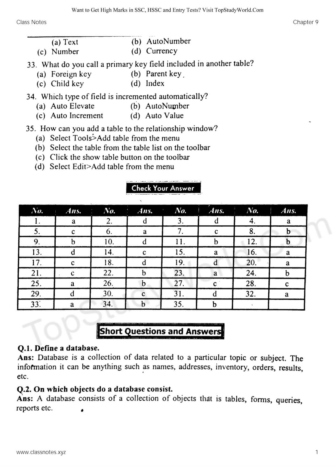 Top Study World: Chapter 9 - Introduction to Access Database Notes in PDF [12th Class]