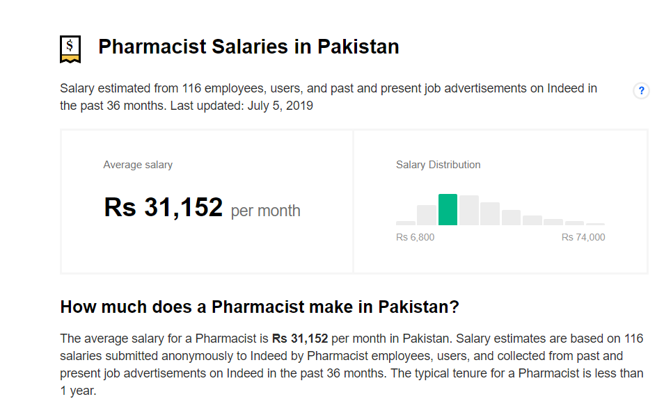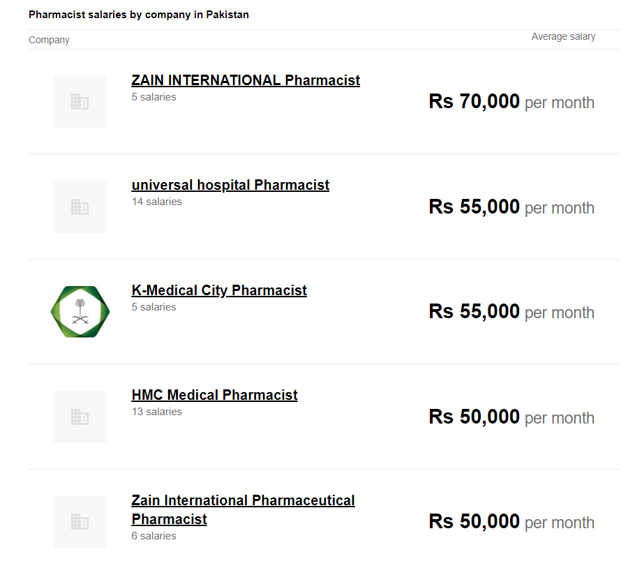 Here you can see the salaries of pharmacists in different institutions in Pakistan