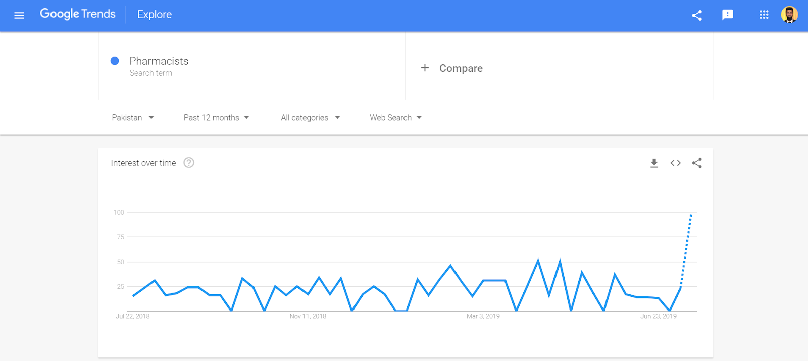 What does it mean? It shows people are actively searching for the pharmacists in Pakistan from the past 12 months.