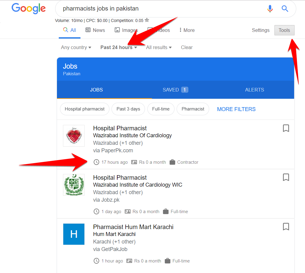 When you type the pharmacist jobs in Pakistan, you can also write your city name instead of Pakistan to find the jobs.