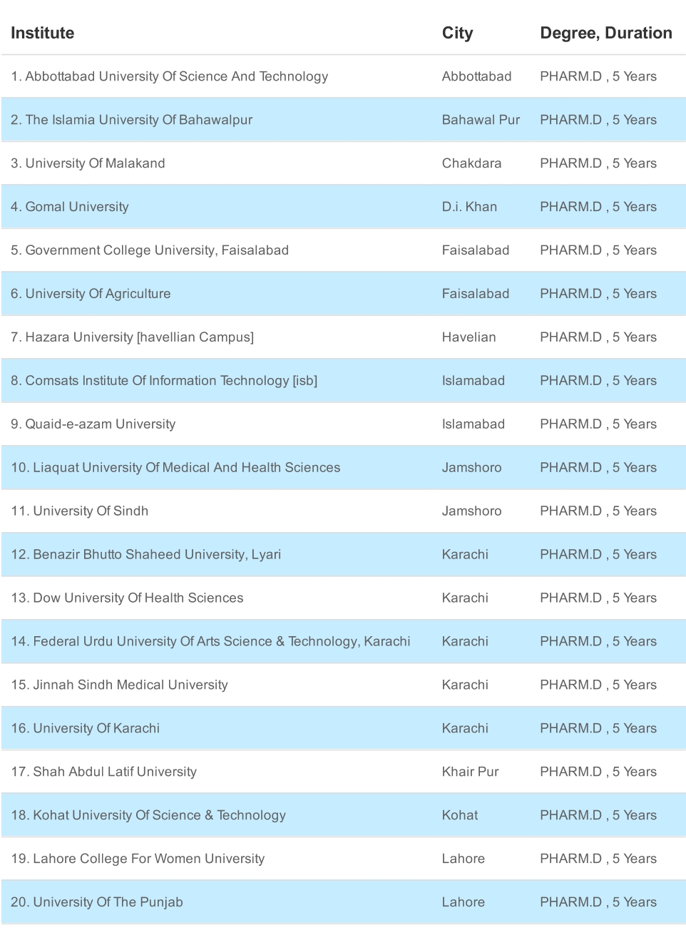 What are the Universities in Pakistan Offering Admissions in Pharmacy?