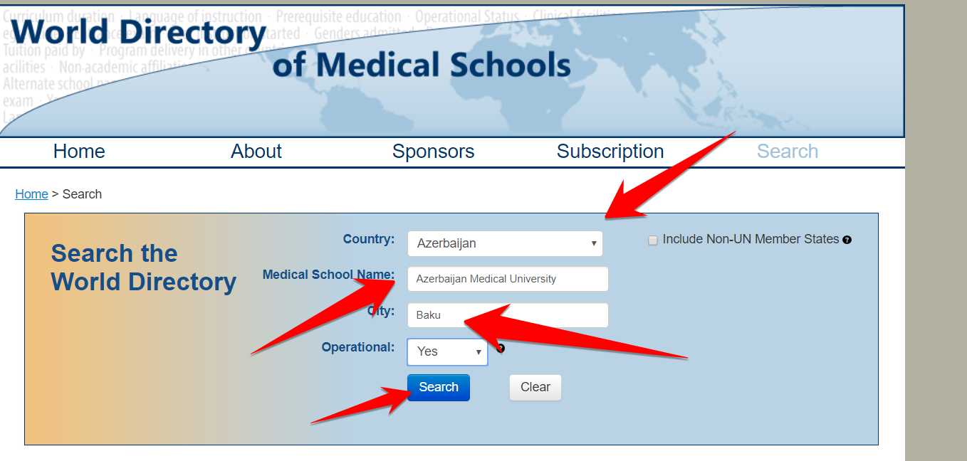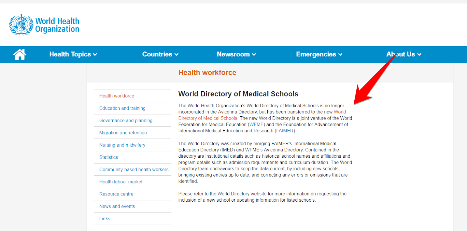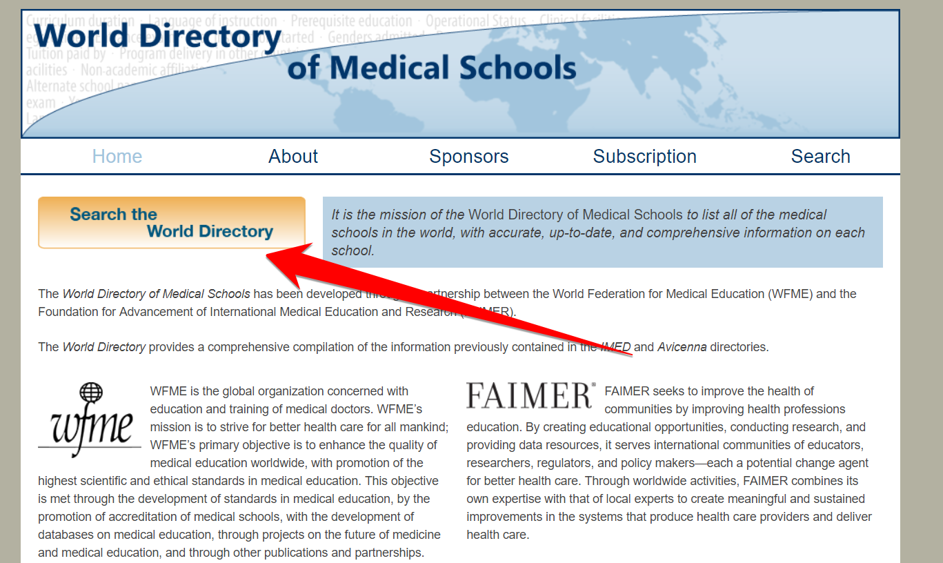 Yes, go to WHO - World Directory of Medical Schools and click World Directory of Medical Schools