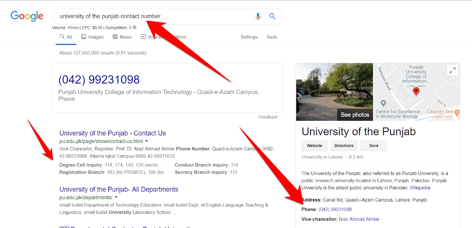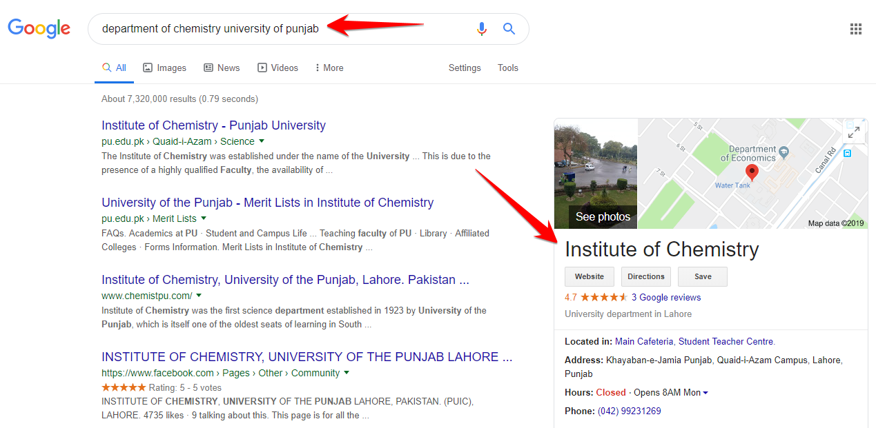To find the Chemistry department of any university, just type Chemisrty+ university name like