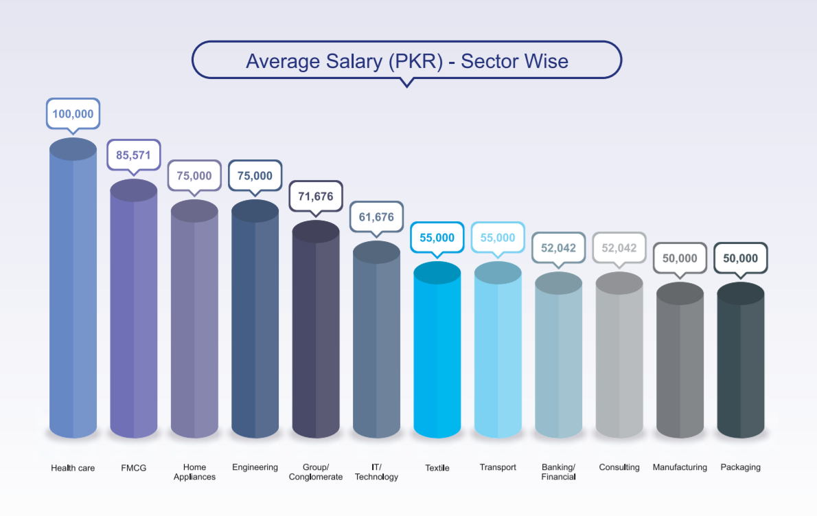 Here is the sector-wise salary in Pakistan, data taken from LUMS Prospectus that is a prestigious university in Pakistan.