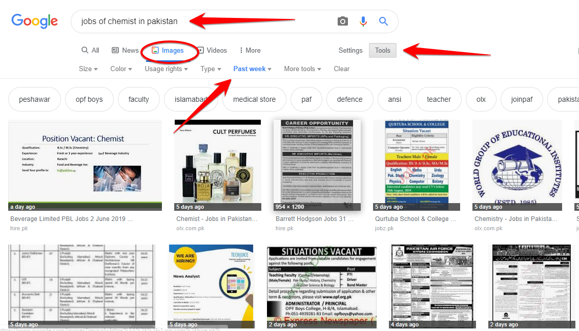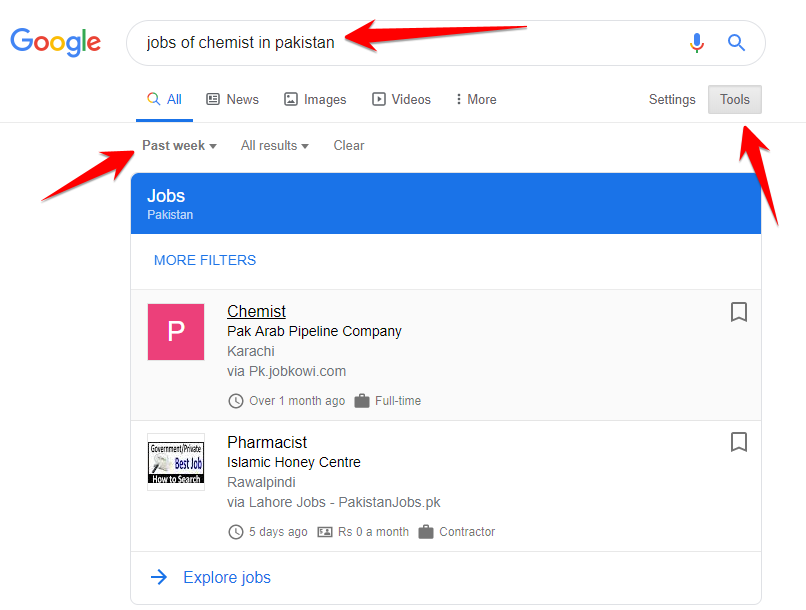 When you type the Chemistry's jobs in Pakistan, you can also write your city name instead of Pakistan to find the jobs.