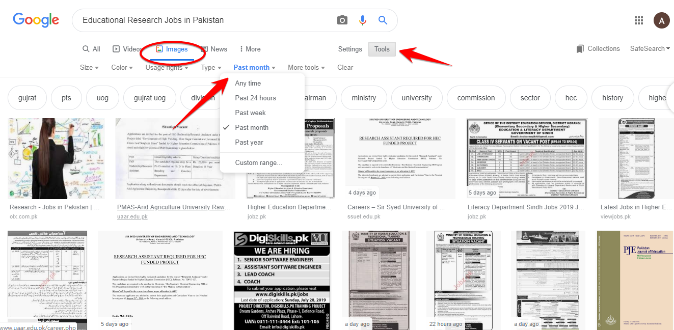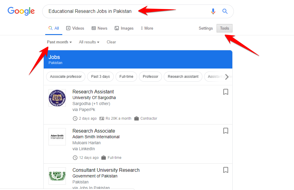 When you type the Educational Research's jobs in Pakistan, you can also write your city name instead of Pakistan to find the jobs.