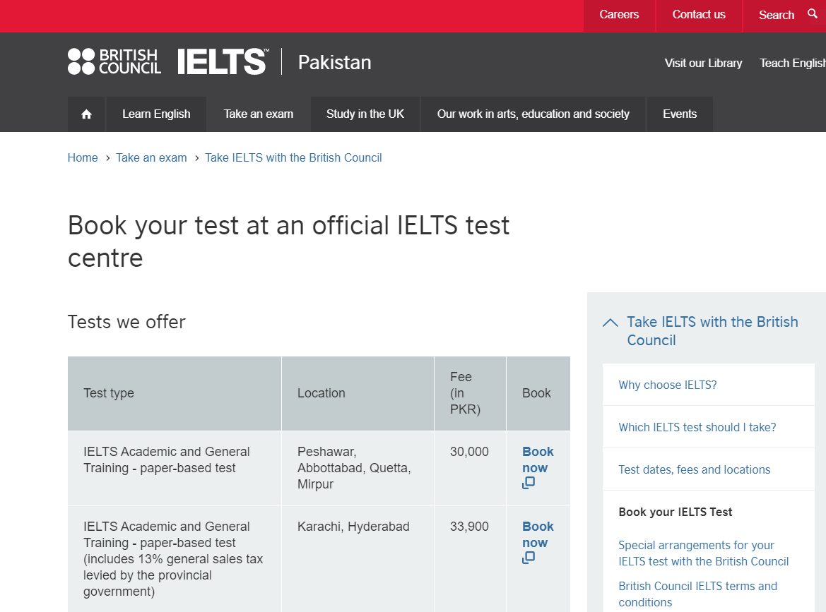For booking your test online visit the British Council website. Once you click on the type of test you want to book you will be directed to create an account here. You will choose your location and test dates as well as whether you want to take a computer-based or paper-based test.