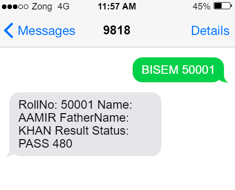 Type “BISEM” your “Roll Number” in SMS and send it to “ 9818” Confused? Here is how you can do it: