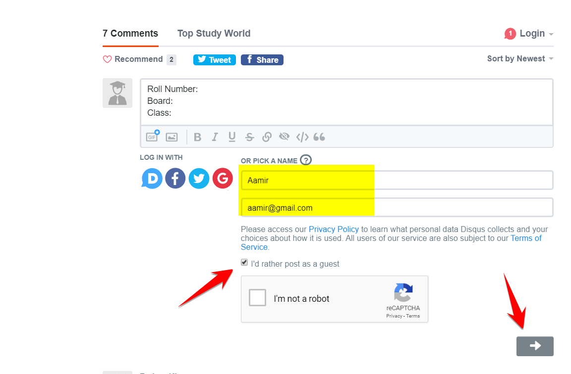 You don’t need to create an account, just tick “I’d rather post as a guest“, type any name and email, and enter your roll number we’ll respond you within 500 seconds.